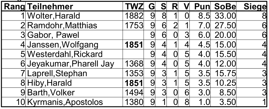 5 | Janssen, Wolfgang | 4 | 4 | 0 | 6 | / | / | 5 | 19 |