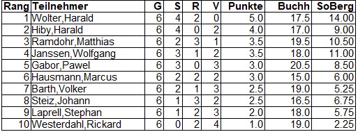 Den Rundensieg und damit die „Goldmedaille“ sicherte sich erneut Harald Wolter – herzlichen Glückwunsch! Den zweiten Platz belegte Harald Hiby. Den dritten Platz teilen sich Matthias und Wolfgang.